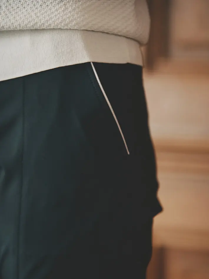 SPRING SUMMER 2026では、イタリア・コモ地区で創業した高級生地メーカーOLMETEX社製のファブリックや、100年以上にわたり世界中で高い評価を受け続けてきたPIAVE社製の生地を採用。厳選された素材使いが、コレクション全体に確かな品格をもたらします。