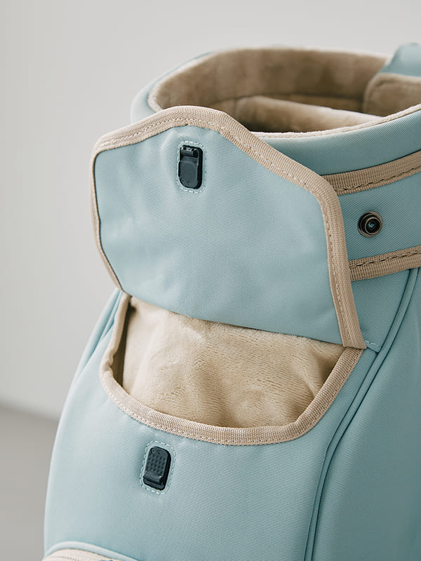 ナイロンとハイブリッドレザーのコンビネーションが際立つスタイリッシュなキャディバッグ。