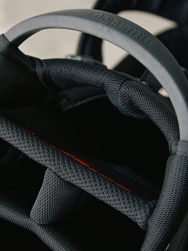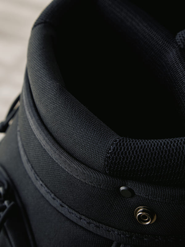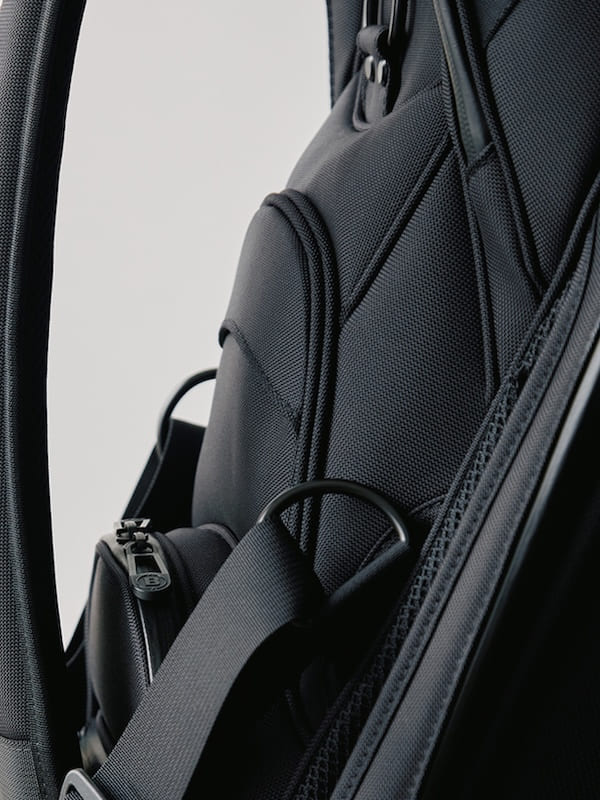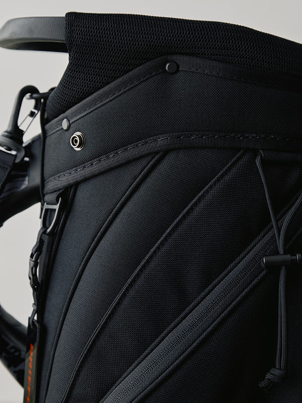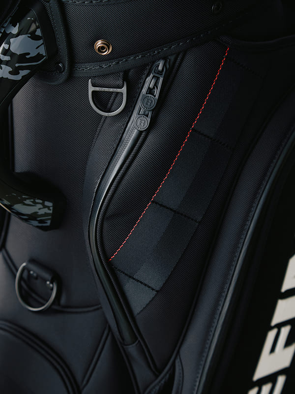 ラウンドの過酷さにも耐え抜くプロユース仕様の耐久性スペックとスタイリッシュなフォルムを兼ね備えたキャディバッグ。