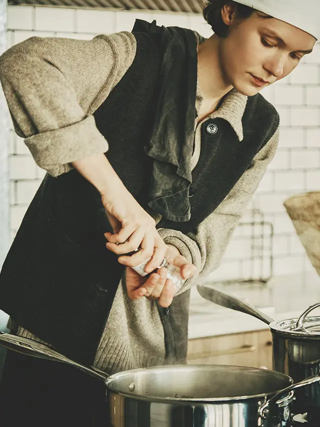 料理と同じで素材がすべての出発点になりますね。食べ物でも、器でも、服でも、私は質感がとても好きなんです。肌に触れて心地よくないものは、基本的に身につけたくありません。だから品質には必ず投資するようにしています。そして、そういうものは時代を超えて使えるものになりますよね。いいバッグは何年も一緒に過ごせるし、いいジャケットも同じです。