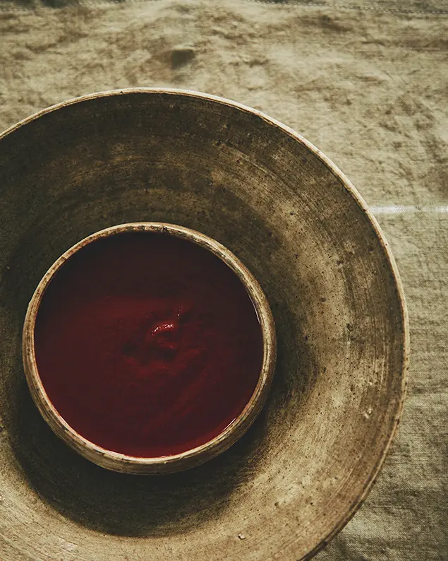 “自然”です。「いまはどんな季節なのか」、「自分がいま世界のどこにいるのか」。そうした要素が絡み合い、つくりたいものが思い浮かぶ。森の近くにいれば、きのこや野生の果実、ベリーのようなものに惹かれますし、あの土っぽい質感や味わいにも引き寄せられます。逆に海のそばにいると、もっと塩気のある味を求めるようになる。きっと魚介もたくさん使いたいって思うはず。自分自身が、自然や環境のリズムと同期しているのだと思います。