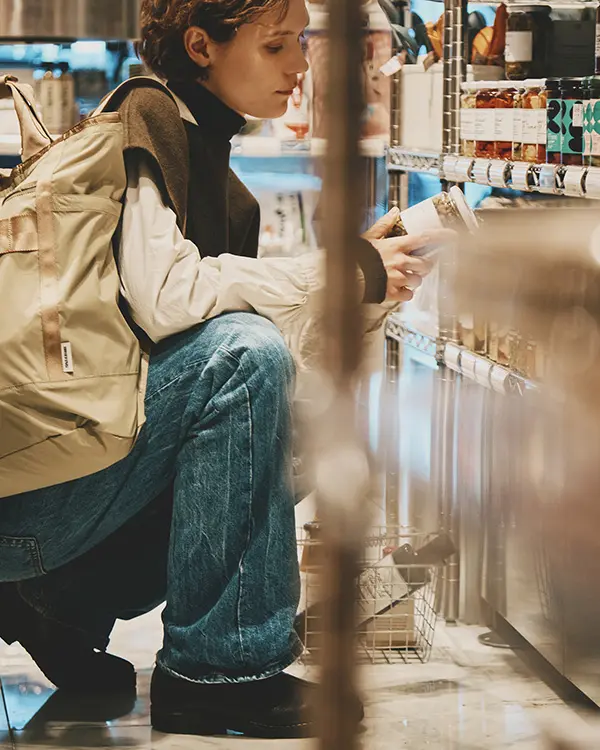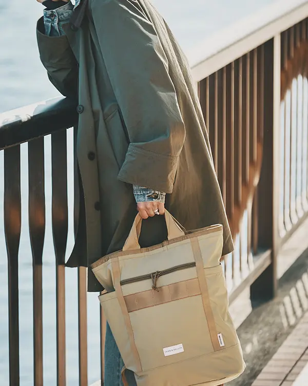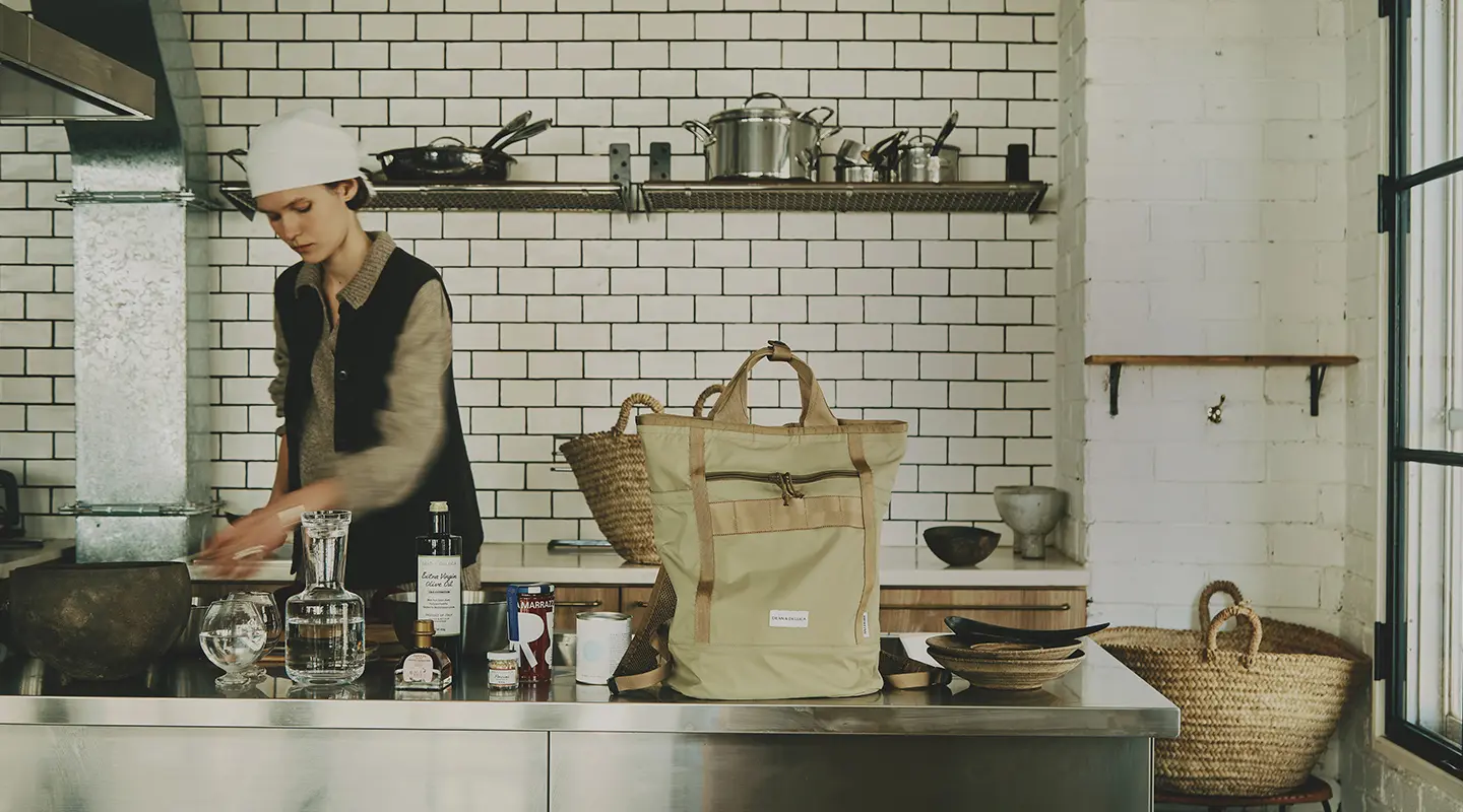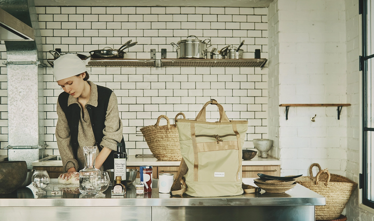 BRIEFINGが培ってきた“機能美”に対する追求心と、DEAN & DELUCAによる“食”へのこだわり。そのふたつの要素が見事に溶け合い、魅力的なプロダクトが生まれました。両者のセッションは今回で5回目。パッカブルで2WAY仕様のバックパックは、軽量でコンパクトな設計でありながら、食材を運ぶマーケットバッグとしてはもちろん、レジャーや旅行など日々のさまざまなシーンに対応する柔軟性と実用性を備えています。今回は料理人でありモデルとして活動するOlaを迎え、食材を選び、運び、料理するという日常の視点から、このバッグの魅力を探ります。