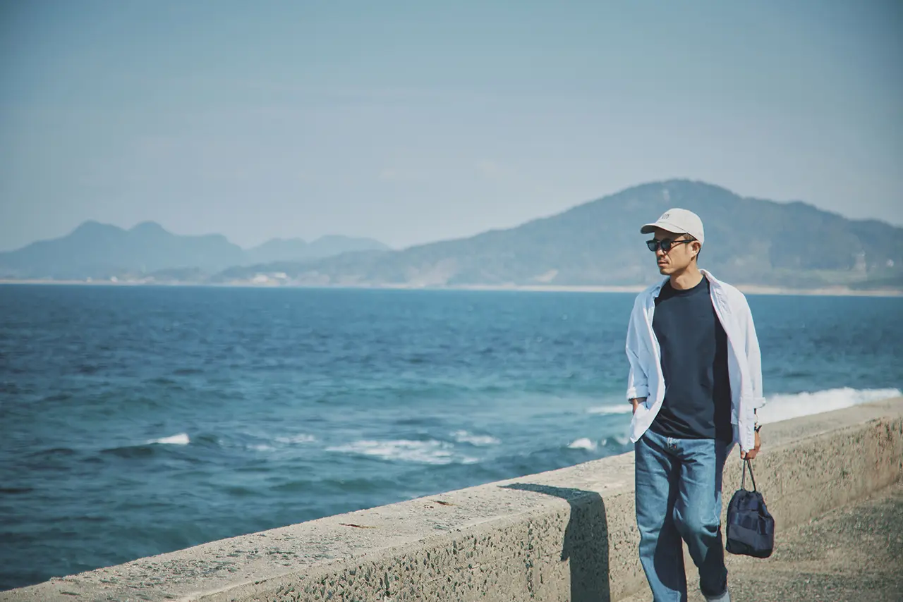 出張が多いと、こうしたポーチが役に立ちます。日常でも今回のショートトリップみたいなシーンにはちょうどいいですよね。Tシャツも含めて、ぼく自身が使いたいものをつくらせてもらった感覚です。