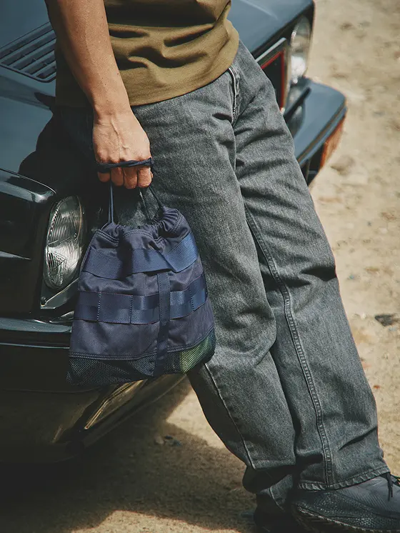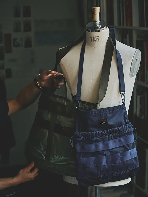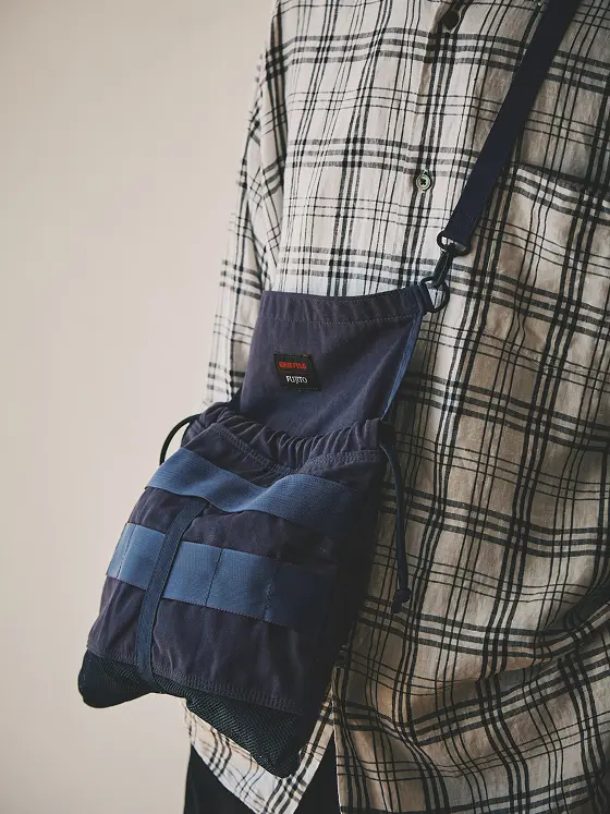 それはBRIEFINGチームから提案があって、ショルダーと巾着で使えるようにしたんです。巾着は家の近所にふらっと出かけるときに使いやすいし、ショルダーはフェスなんかでも重宝しますよね。こういうアイデアは自分ひとりだけでは思い浮かばないし、ユニークな仕様にものすごく共感したので、意味のあるコラボレーションになったと思います。