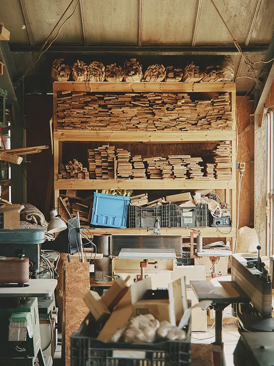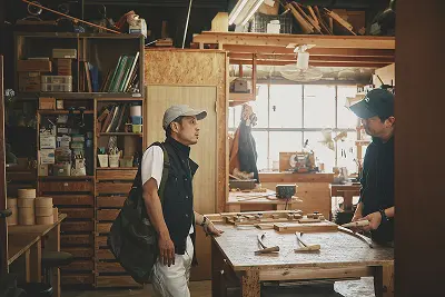 木工家 酒井航氏が立ち上げたブランドDOUBLE=DOUBLE FURNITUREのショップ併設のアトリエ。