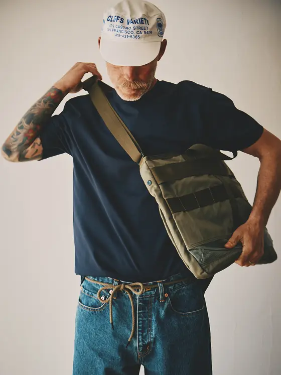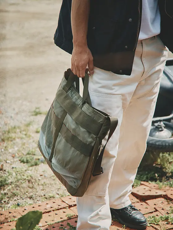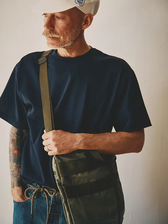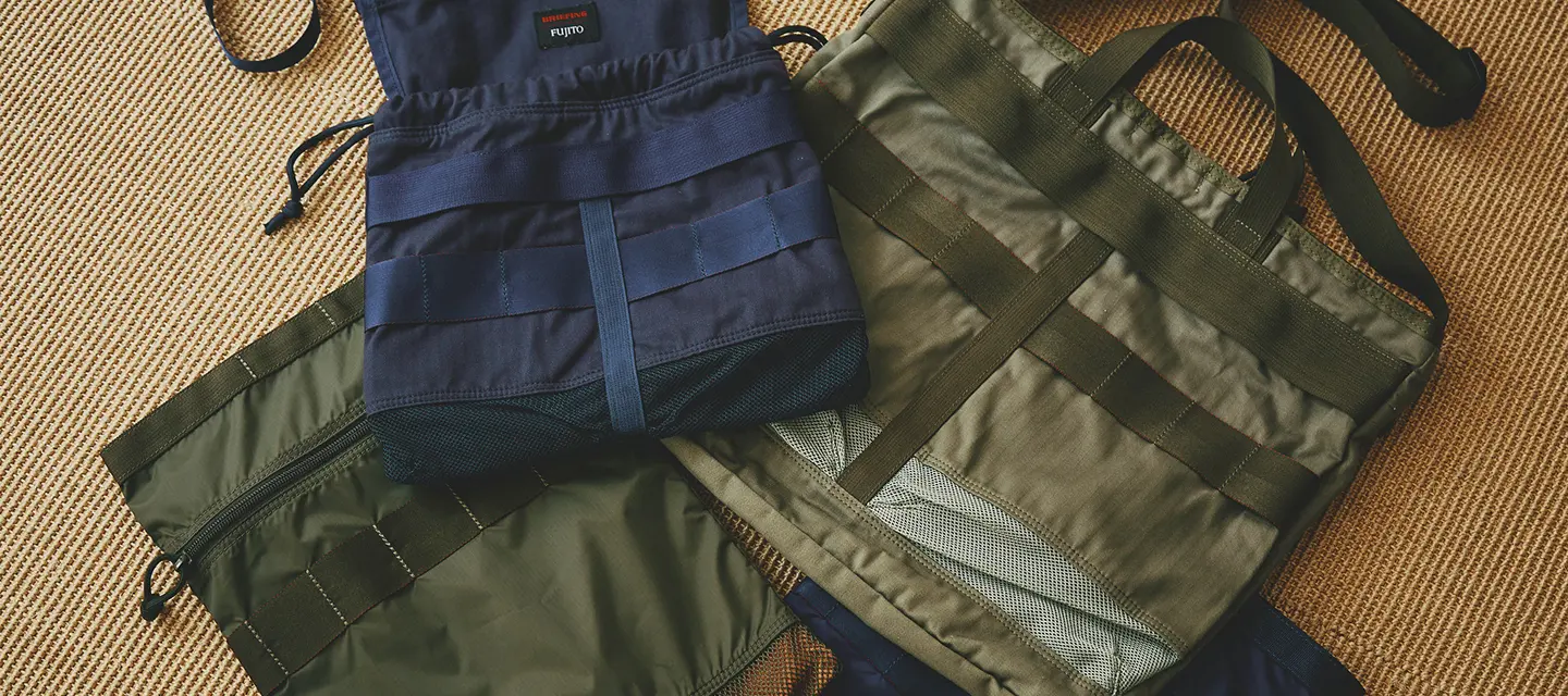 九州・福岡を拠点に活動するデザイナー藤戸剛氏が手がけるメンズブランド「FUJITO(フジト)」とのコラボレーションアイテムが登場。「上質なデイリーギア」をテーマに掲げ、両ブランドに共通するミリタリーテイストを軸に、素材感にこだわりながら日常のスタイリングに自然と溶け込むシンプルなデザインに仕上げました。 商品ラインナップは、APRON BAG、HELMET BAGに加え、ポーチとセットで楽しめるクルーネックTシャツの全3型。FUJITOらしいさりげない遊び心と使い勝手を高めるギミックを随所に取り入れ、日常のさまざまなシーンで活躍する、機能性とデザイン性を兼ね備えたコラボレーションアイテムをお届けします。