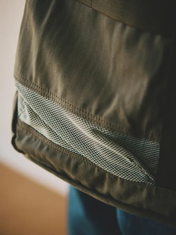 ─ レッドクロスの他にメッシュ素材を使ったり、カラーリングも茄子紺と呼ばれるような独特のネイビーカラーや、褪色したオリーブになっているのが特徴的ですよね。