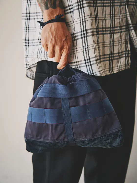 Tシャツとセットになるポーチもそうですが、バッグではミリタリーの象徴的なヘルメットバッグをつくろうと。これは3rd Typeがサンプルソースになっています。あとはレッドクロスを生地として採用したかったんです。これもミリタリーを軸とした考えで、まとまりがいいなと思って。