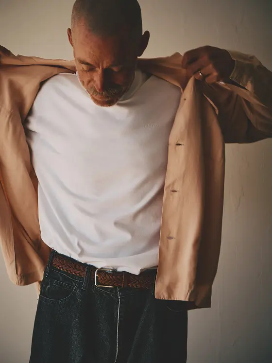 街ゆく人や、身近にいる人たちの着こなし、そうしたものが無意識に入ってきますね。あとはパリやニューヨークで展示会をしたときに会う人たちの着こなしも、気づけばよく見ています。その上で、自分のルーツである古着との擦り合わせを行うんです。いろんな人に会う中で気になったアイテムやスタイルがあれば、倉庫で眠っているサンプルたちの中からイメージに近いものをピックアップして、そこからデザインを練っていく。自分が持っていなければ古着屋に行って、いちからサンプルを探すこともあります。それの繰り返しなんです。