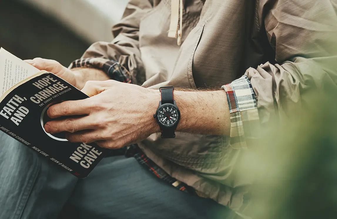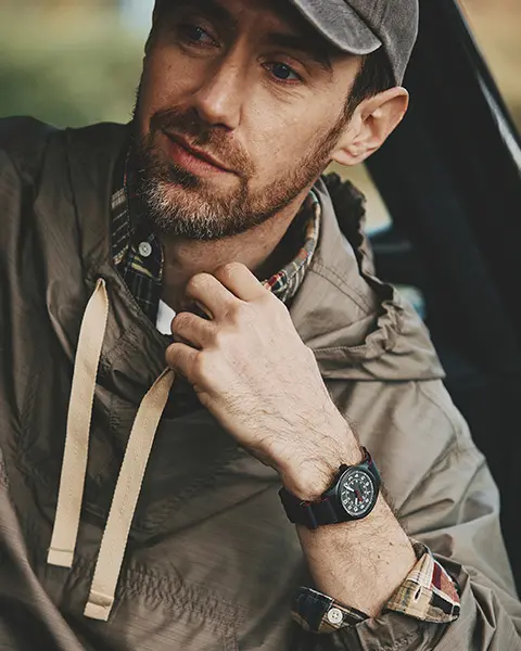 約10年ぶりとなるTMEXとのコラボレーションウォッチは、フィールドウォッチの王道を踏襲したデザインに。