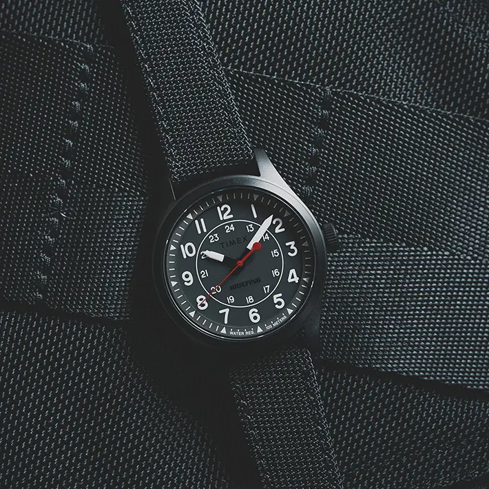 1854年から続くアメリカの世界的時計メーカー<TIMEX(タイメックス)>とのコラボレーションウォッチが登場。BRIEFINGとTIMEXに共通するルーツであるミリタリーとタフネス。両ブランドのアイデンティティとクラフツマンシップが共鳴し、2015年にビューティー&ユース