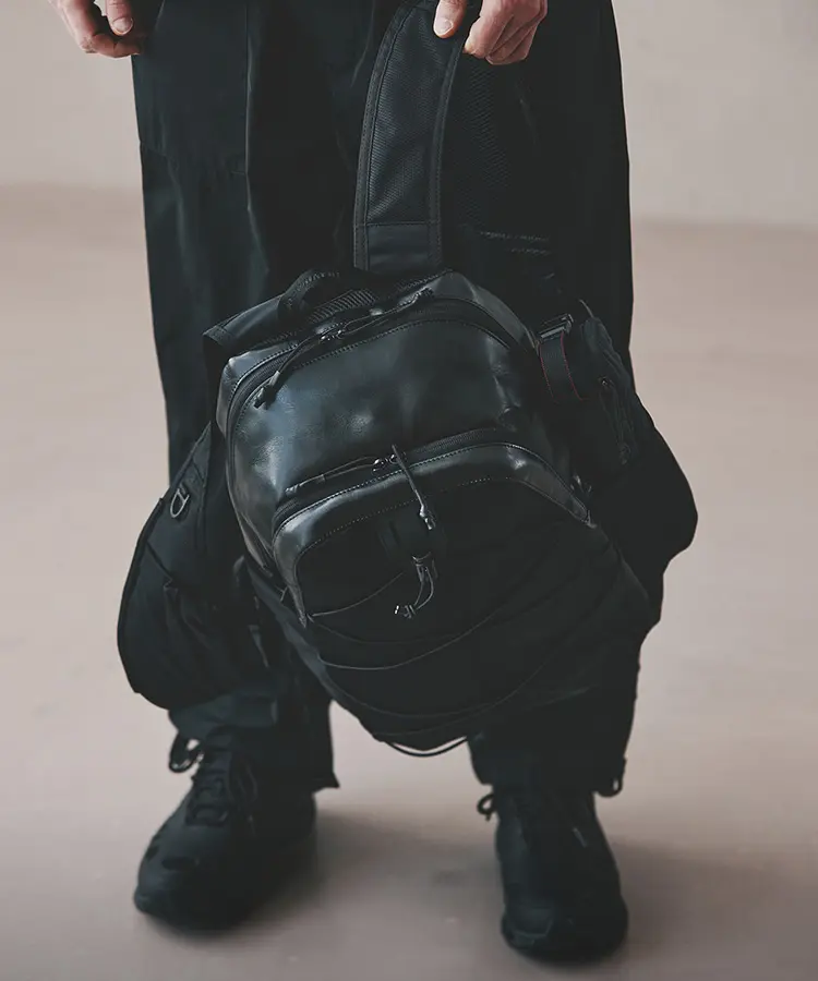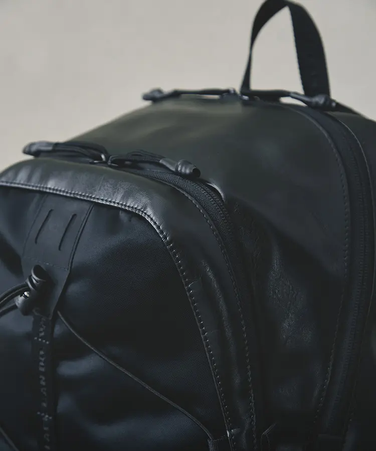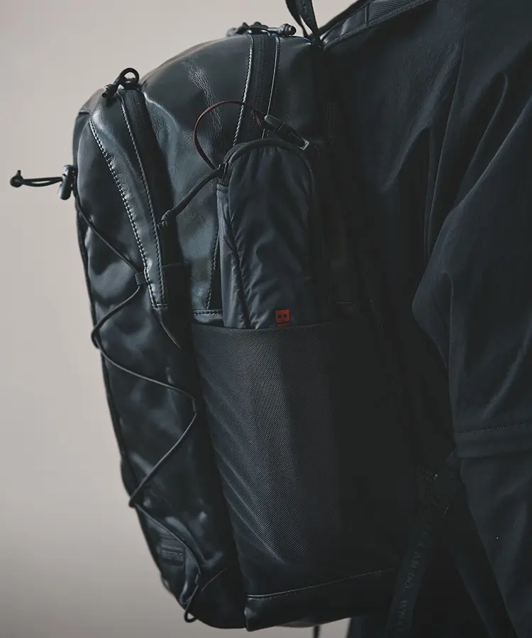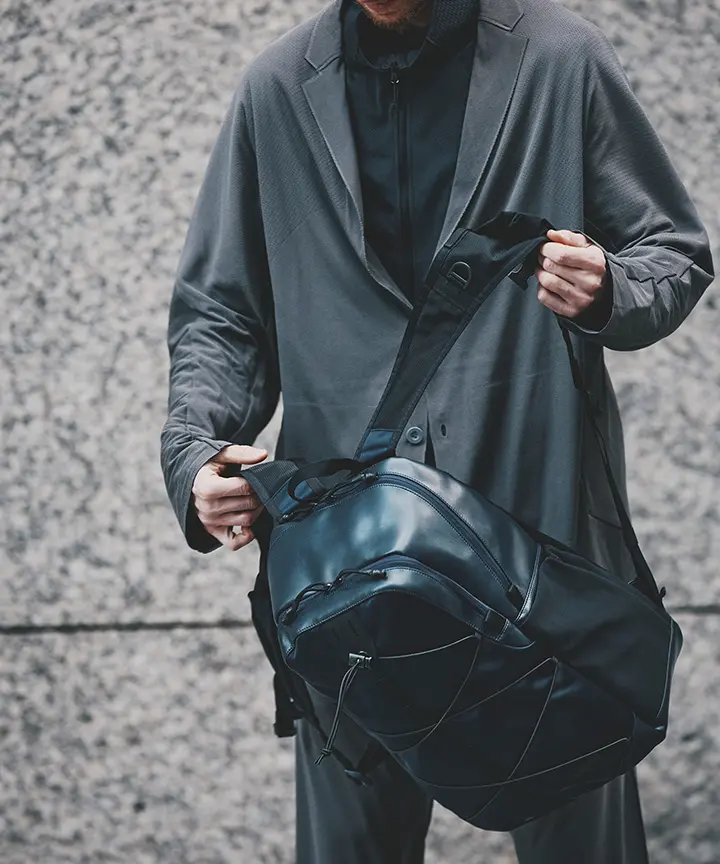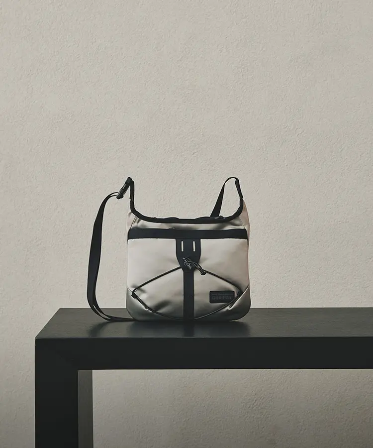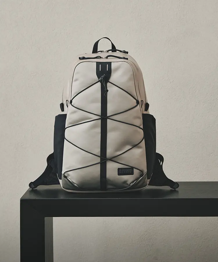 Mountaineering」とのコラボレーションも実現。サコッシュ、ボストンバッグ、バックパックの全3型(※)をラインナップし、ラインごとに異なるカラーリングを採用しました。 ブランドコンセプト“服を着るフィールドはすべてアウトドア”に呼応し、ボストンバッグを除く各モデルのフロントにはバンジーコードを配置。エコレザーとナイロンを組み合わせ、アウトドアフィールドに対応するタフさと都市生活に馴染む洗練された表情を兼ね備えたプロダクトに仕上げています。