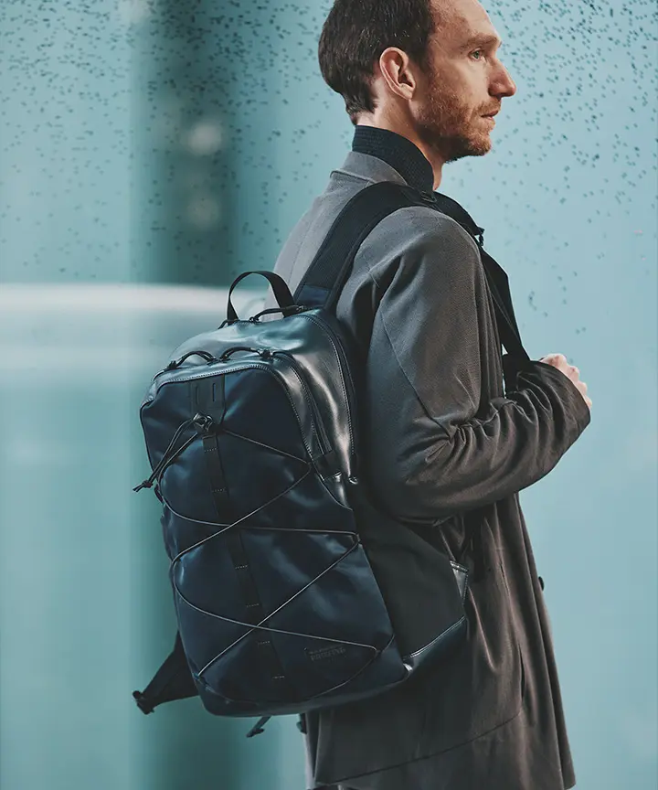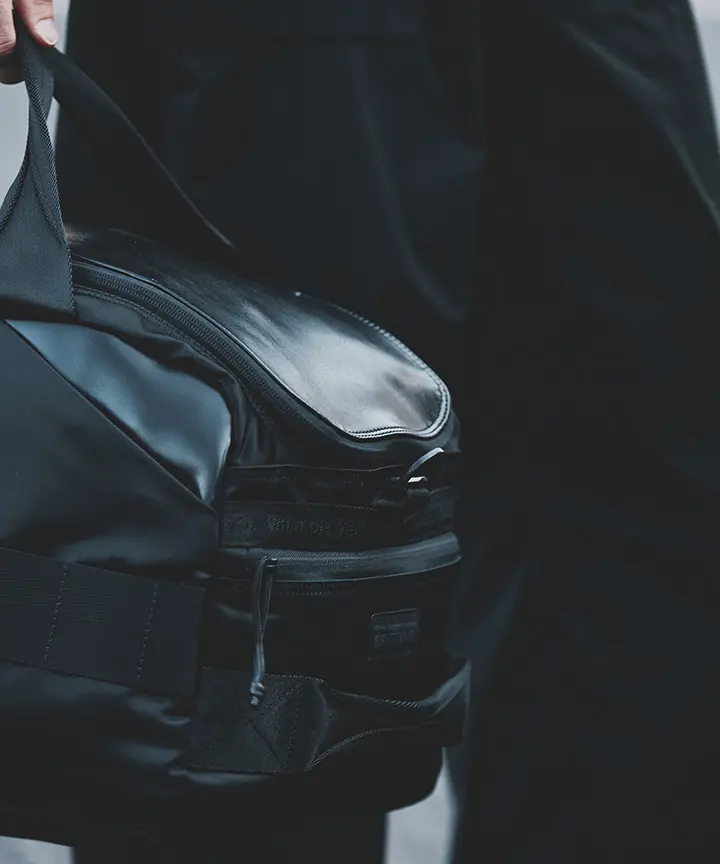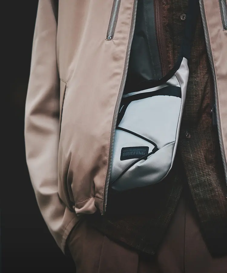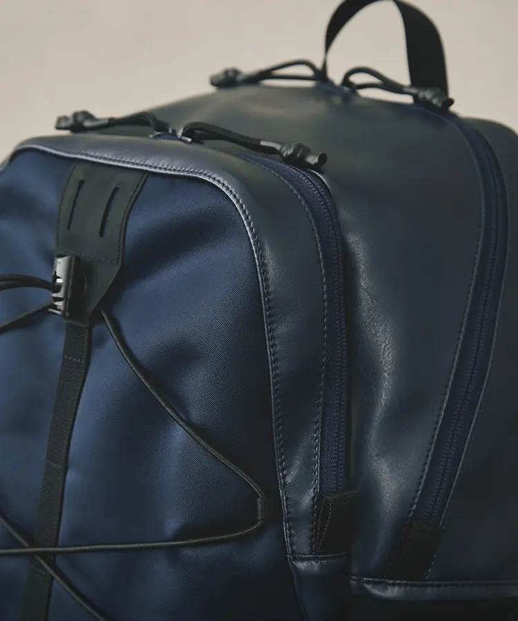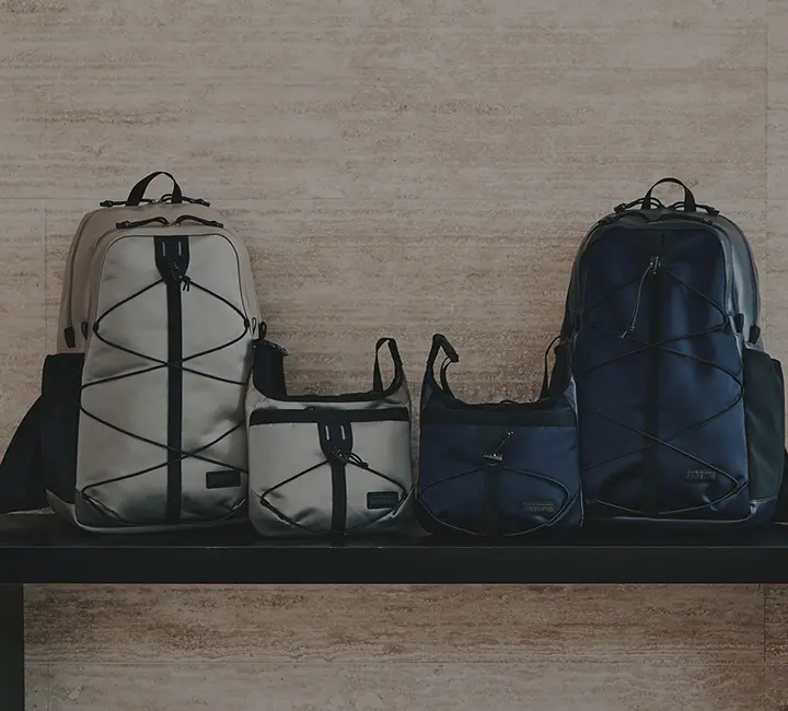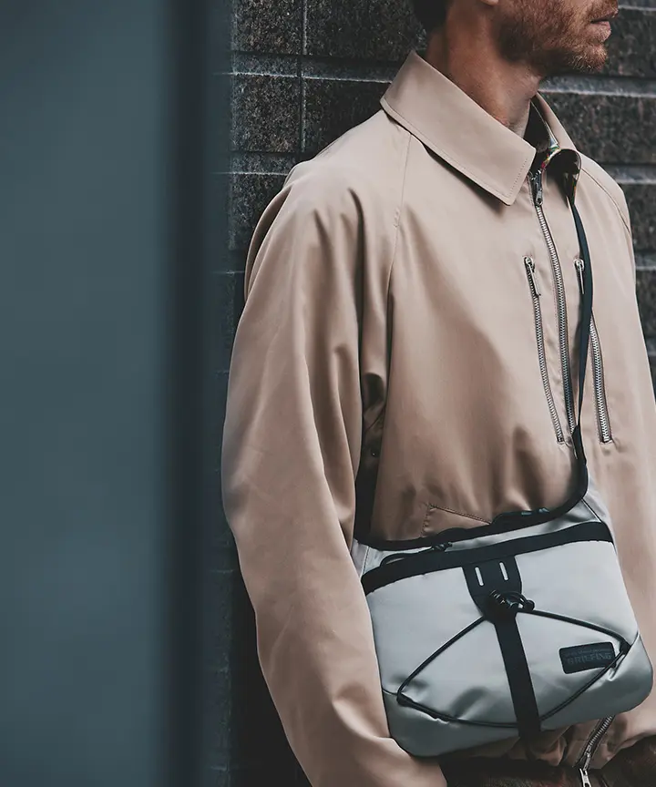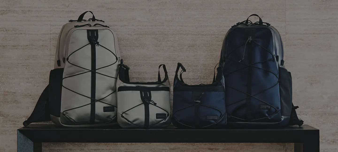 Mountaineering」とのコラボレーションも実現。サコッシュ、ボストンバッグ、バックパックの全3型(※)をラインナップし、ラインごとに異なるカラーリングを採用しました。 ブランドコンセプト“服を着るフィールドはすべてアウトドア”に呼応し、ボストンバッグを除く各モデルのフロントにはバンジーコードを配置。エコレザーとナイロンを組み合わせ、アウトドアフィールドに対応するタフさと都市生活に馴染む洗練された表情を兼ね備えたプロダクトに仕上げています。