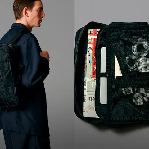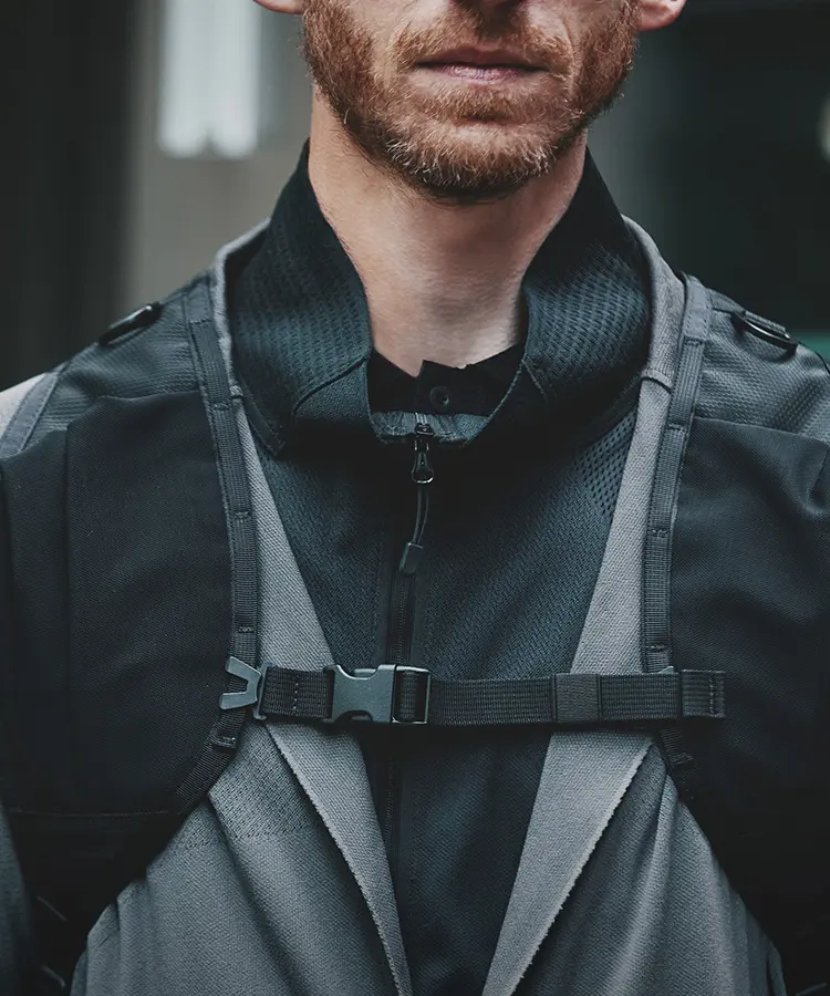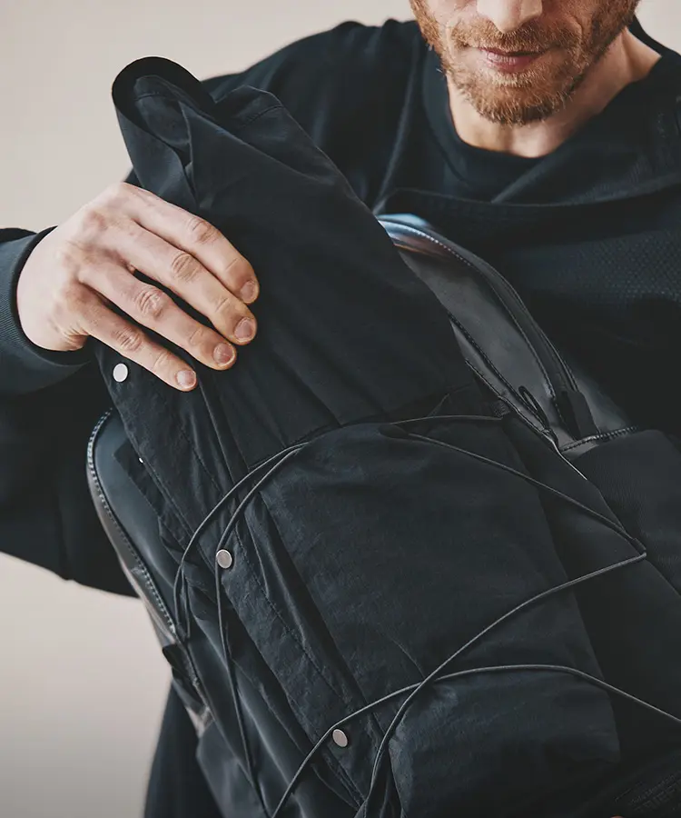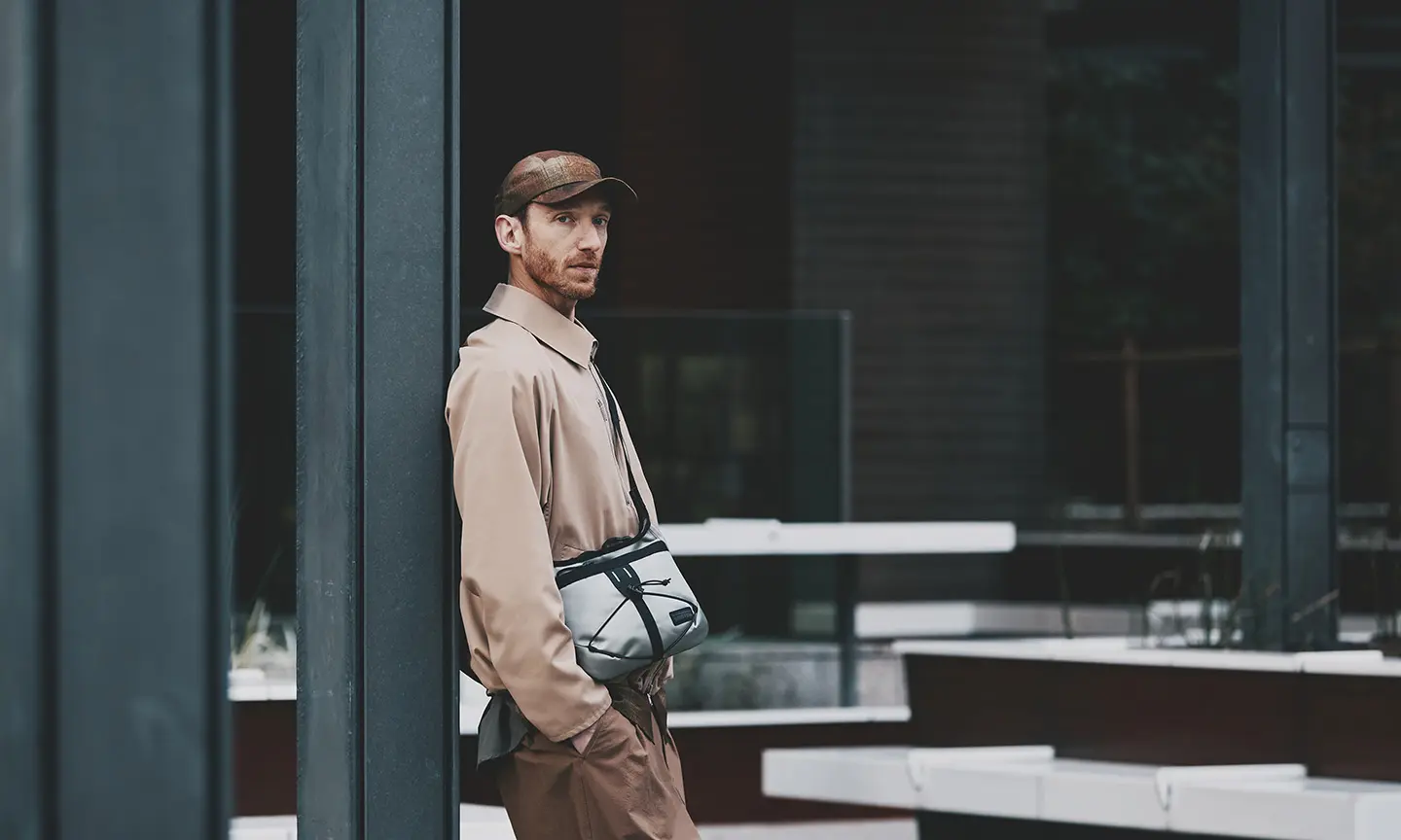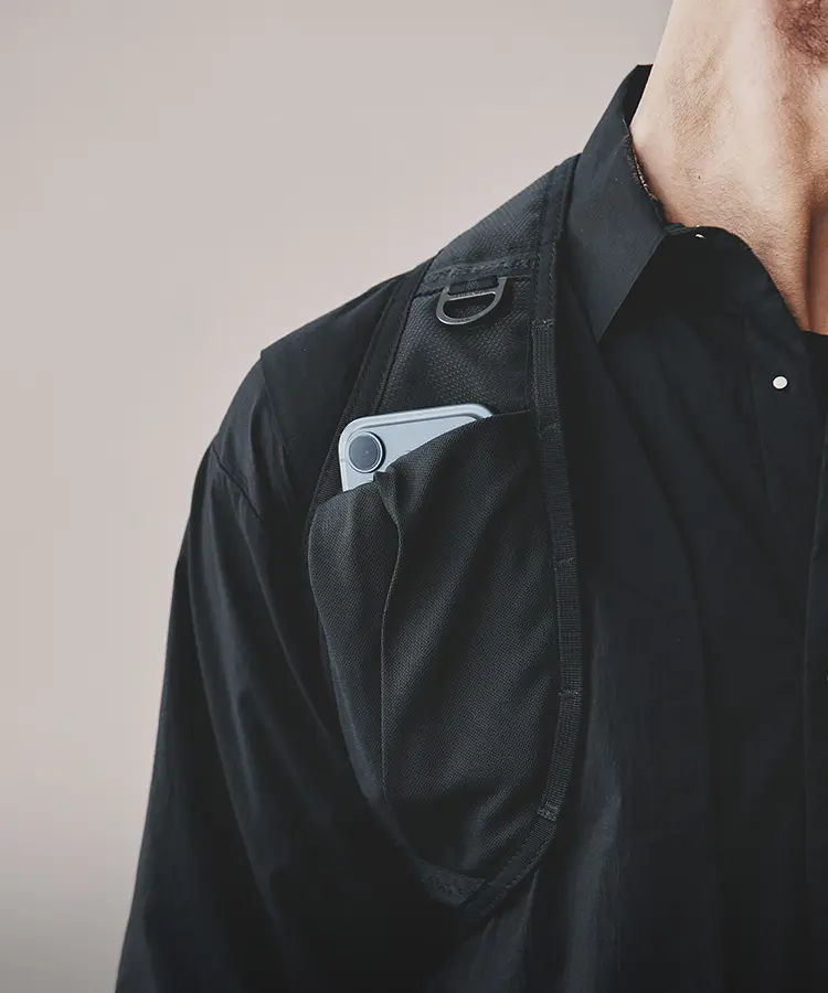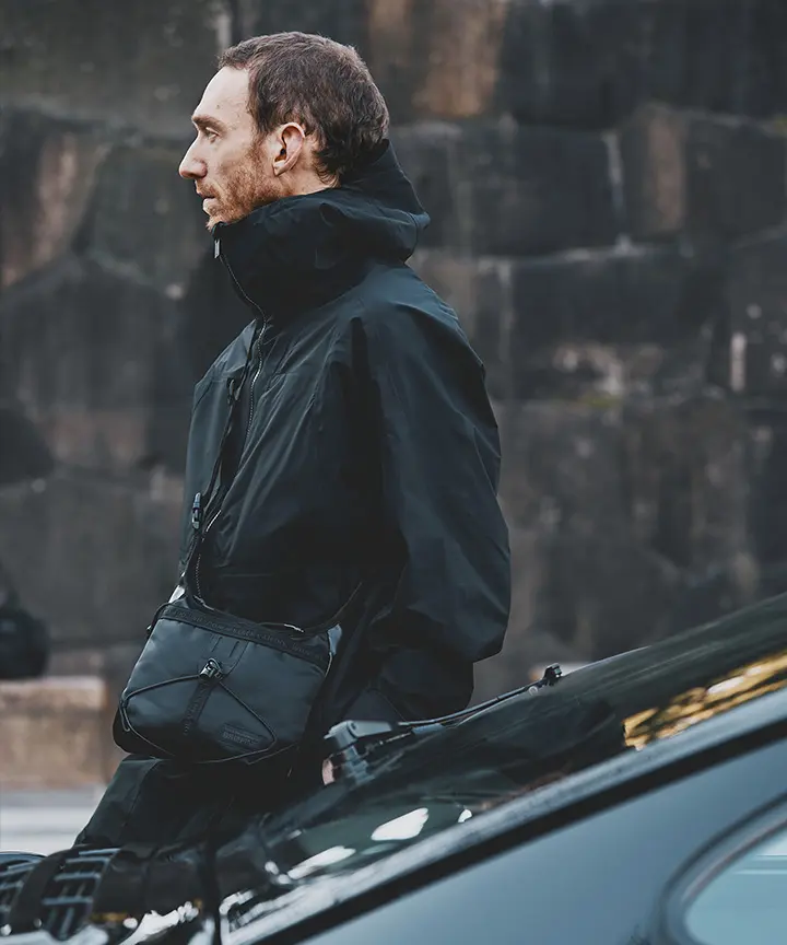 Mountaineering」とのコラボレーションも実現。サコッシュ、ボストンバッグ、バックパックの全3型(※)をラインナップし、ラインごとに異なるカラーリングを採用しました。 ブランドコンセプト“服を着るフィールドはすべてアウトドア”に呼応し、ボストンバッグを除く各モデルのフロントにはバンジーコードを配置。エコレザーとナイロンを組み合わせ、アウトドアフィールドに対応するタフさと都市生活に馴染む洗練された表情を兼ね備えたプロダクトに仕上げています。