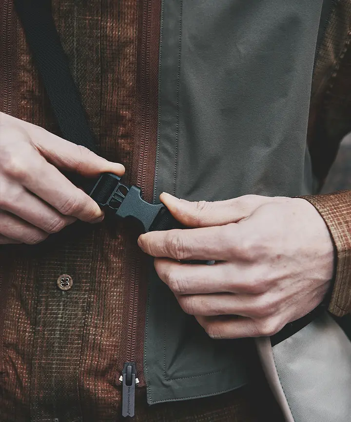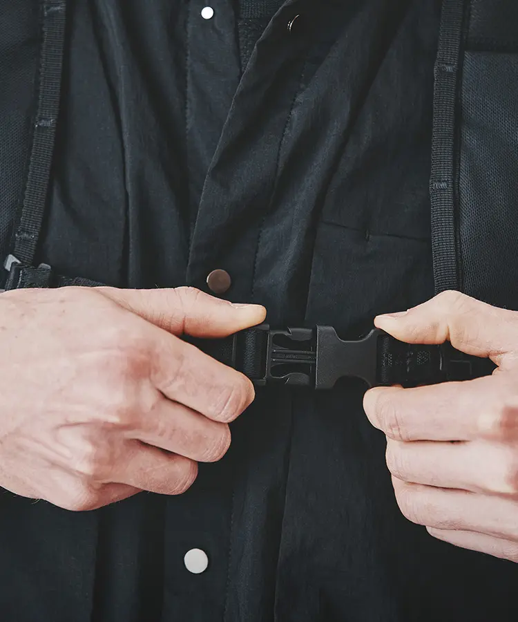 White Mountaineeringでは、ネイビーとベージュの2色をご用意。初採用となるネイビーは、都市性や知性を感じさせるカラーでありながら、汚れや経年変化にも強く、実用面においても優れた特性を発揮。日常からフィールドまで幅広いシーンに対応します。一方のベージュは、自然やアウトドアフィールドを想起させる色合いでありながら、柔らかさと軽快さを併せ持つカラーリング。スタイリングに抜け感をもたらし、シーズンムードを高めます。この2色を新たに組み入れることで、アウトドアと日常、機能性とファッション性、その中間にあるWhite Mountaineeringらしい世界観を体現しています。
